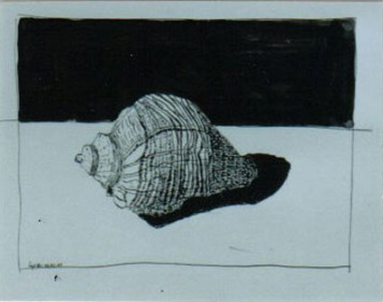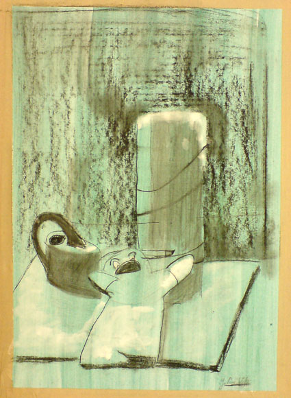 Bleistift, schwarze Kreideauf getöntem Karton,weiß gehöht, 2006, 30 mal 40 cm